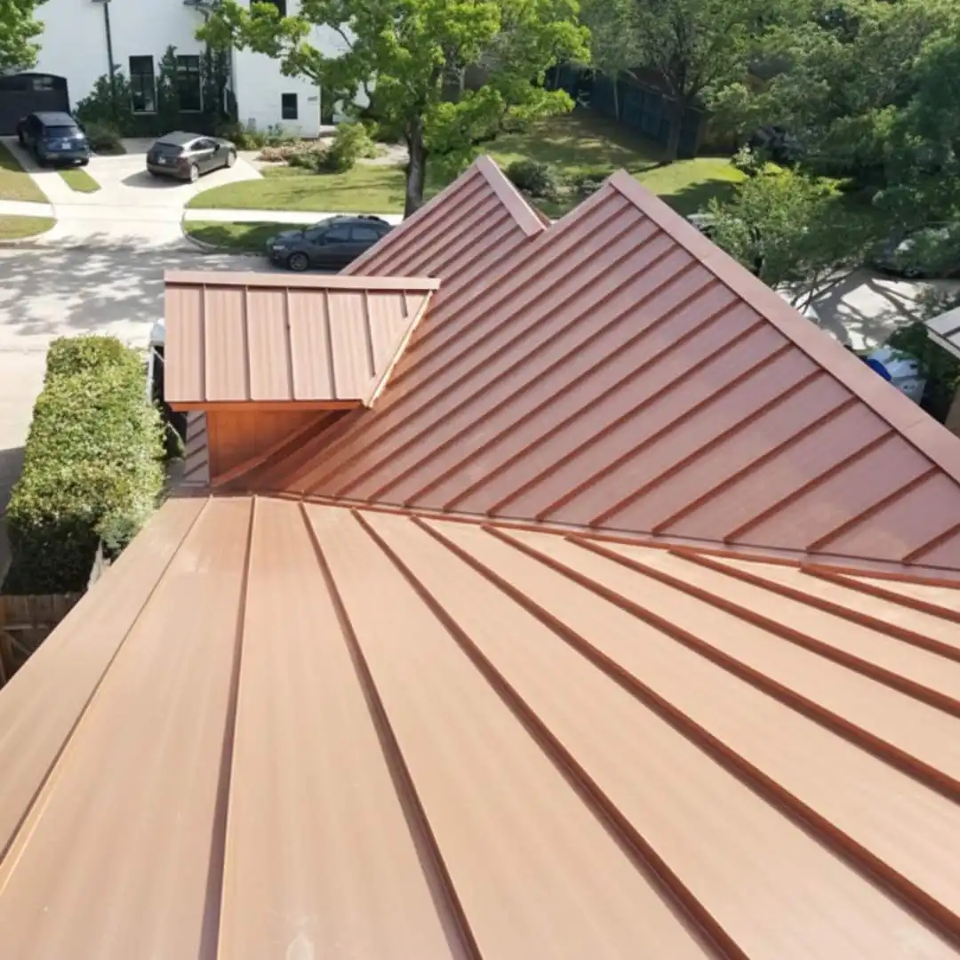 Copper metal roofing is the ultimate premium building material. Unlike other metals that require coatings or paint to prevent rust, copper develops its own protective layer through oxidation. It is highly malleable, allowing for intricate detailing on domes, turrets, and complex rooflines that other materials simply cannot accommodate. It is lightweight, fireproof, and provides an unmistakable mark of quality.