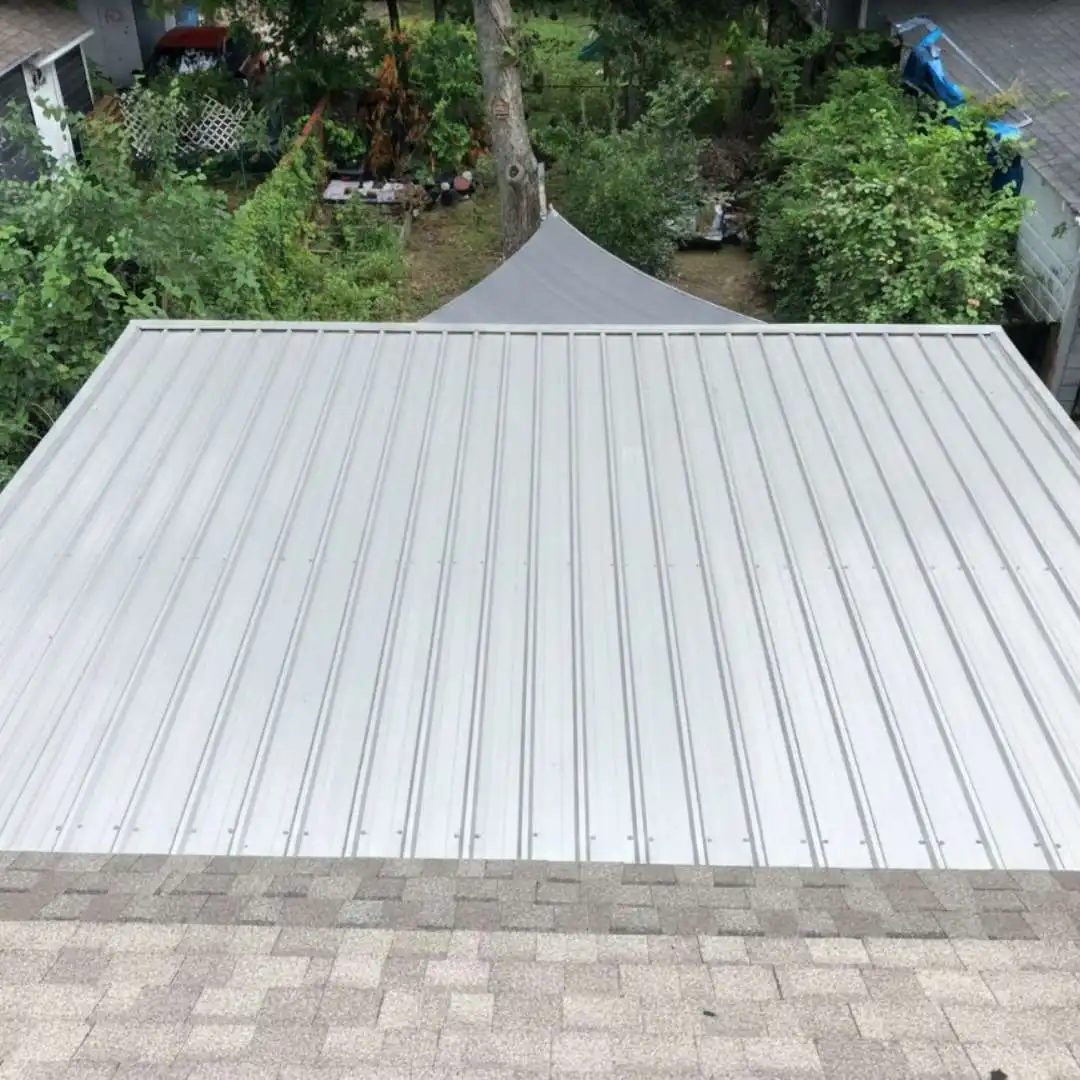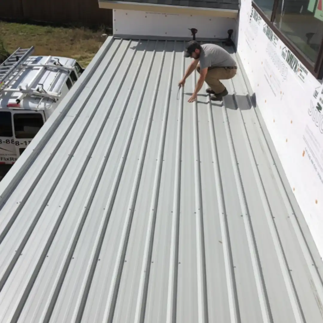Important Engineering Note: While often referred to as “flat” roofs, corrugated metal performs most reliably with at least a slight pitch to ensure proper drainage. If your roof is completely level, we will argue for a pitch correction or specialized lap-sealant techniques to prevent water from backing up under the panels. Our goal is to provide a reliable defense that actually works for your specific structure.