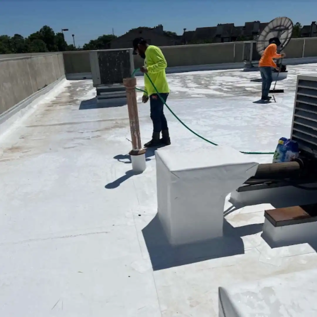 Reinforced textured pads installed in high-access areas (like near AC units) to prevent membrane wear.